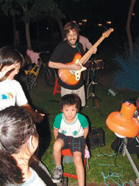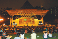 為響應節能,荒野保護協會舉辦關燈活動,圖為關燈音樂會,不少民眾在戶外聆聽。荒野保護協會提供