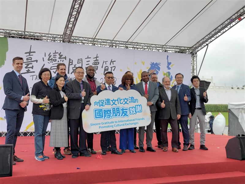 【記者羅智華台北報導】由國家圖書館主辦的「台灣閱讀節」,今、明兩天在中正紀念堂園區登場,有來自邦交國貝里斯、聖克里斯多福及捷克等十四個駐台大使館與機構齊聚一堂,進行圖書交換、捐贈,透過國際交流共譜「世界交享閱」,現場還有故事村、行動書車等活動,吸引許多民眾前來親子共讀。