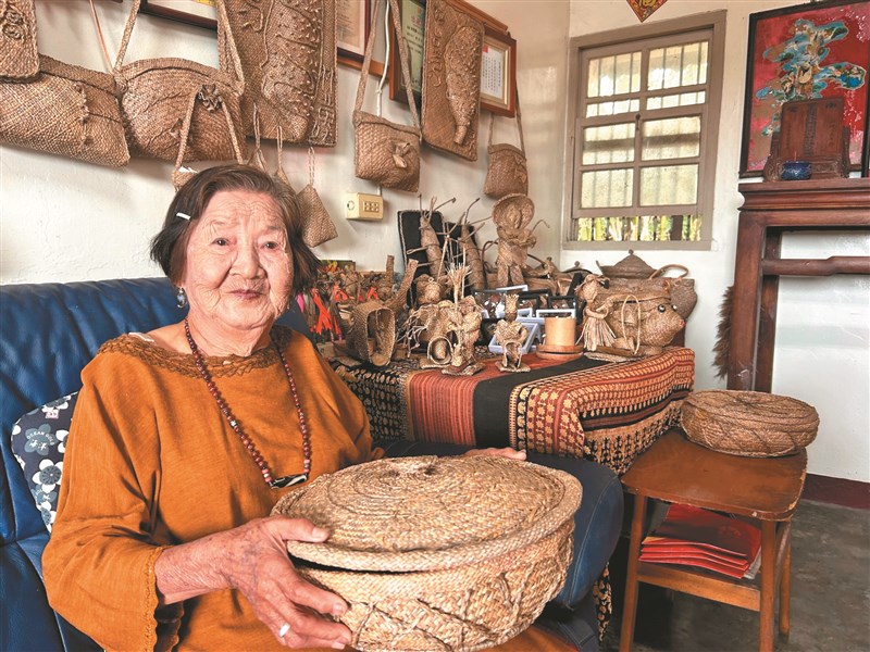 黃嬌高齡93歲,是國寶級草編藝術大師。圖/徐白櫻