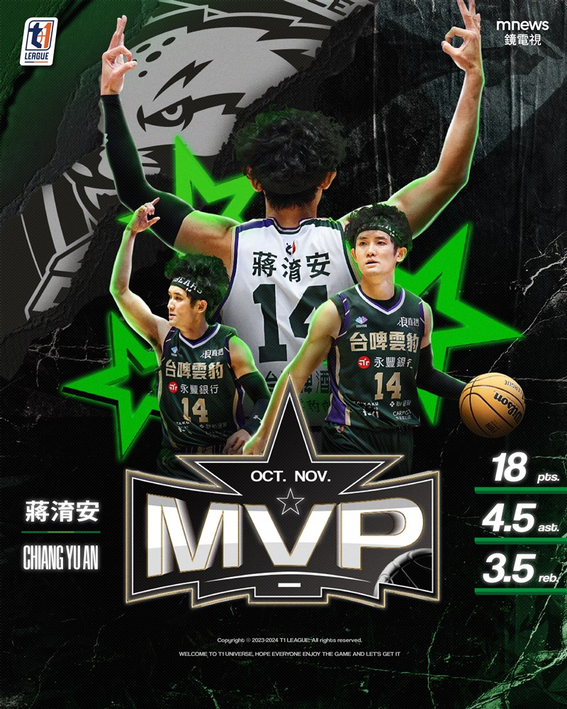 蔣淯安因台灣啤酒英熊與桃園永豐雲豹合併來到雲豹,11月出賽4場繳出場均18分4.5助攻成績。