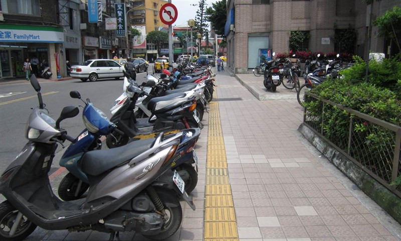 北市推動機車退出人行道,但部分未設置禁停牌面的路段,機車停上人行道,警方卻以非「機退2.0」路段不取締,交通局表示,一個月內會與警方研議取締標準。圖/台北市政府民政局提供