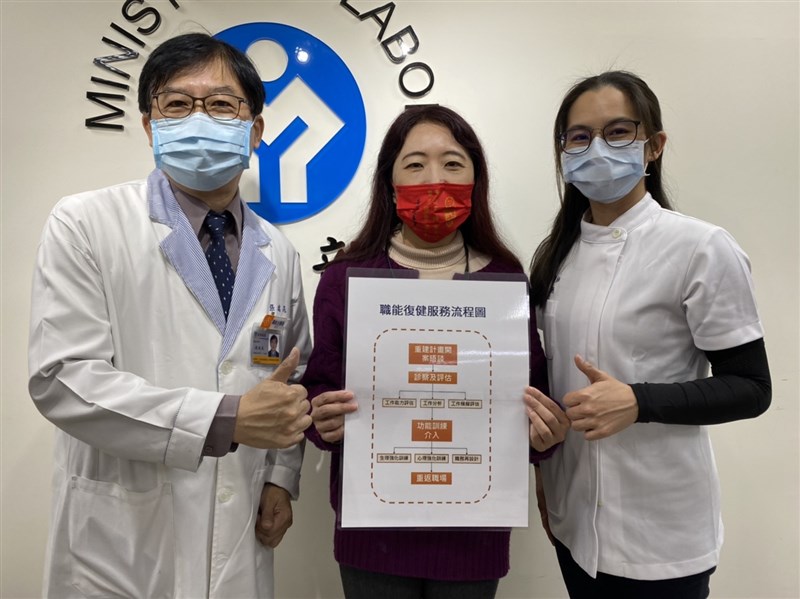 圖為2022年5月「勞工職業災害保險及保護法」上路後,職災勞工的職能復健等服務將逐步轉由經認可的職能復健專業機構,提供更具近便性及在地化的服務。左起為高雄長庚醫院職能治療師、勞動部職安署職災勞工保護組組長林秋妙、成大醫院職能治療師康鈞雅。圖/資料照片