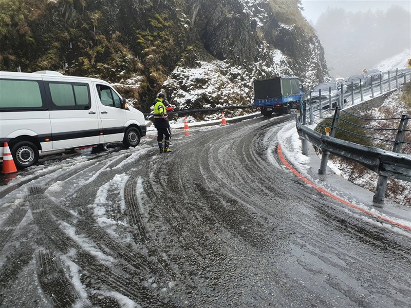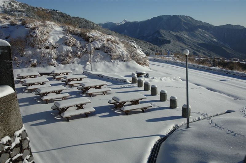 合歡山雪季將自12月30日至明年2月29日止,期間警方將視沿線交通及停車狀況疏導或管制,如遇下(積)雪或路面結冰,將禁止各類車輛通行。圖/太管處提供