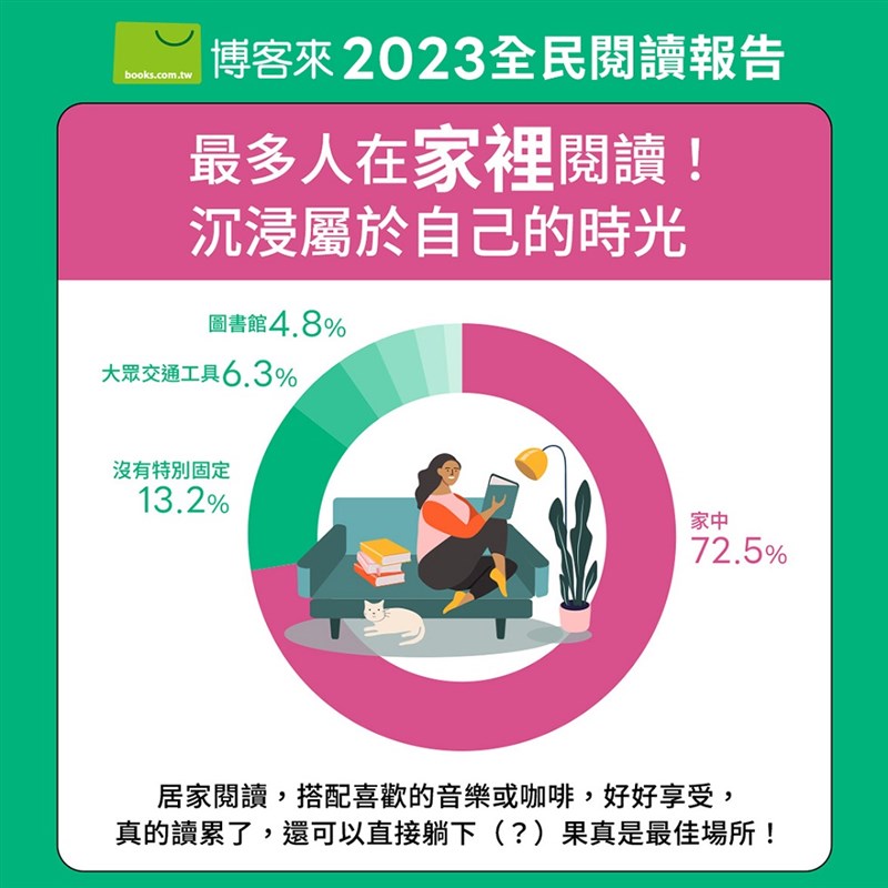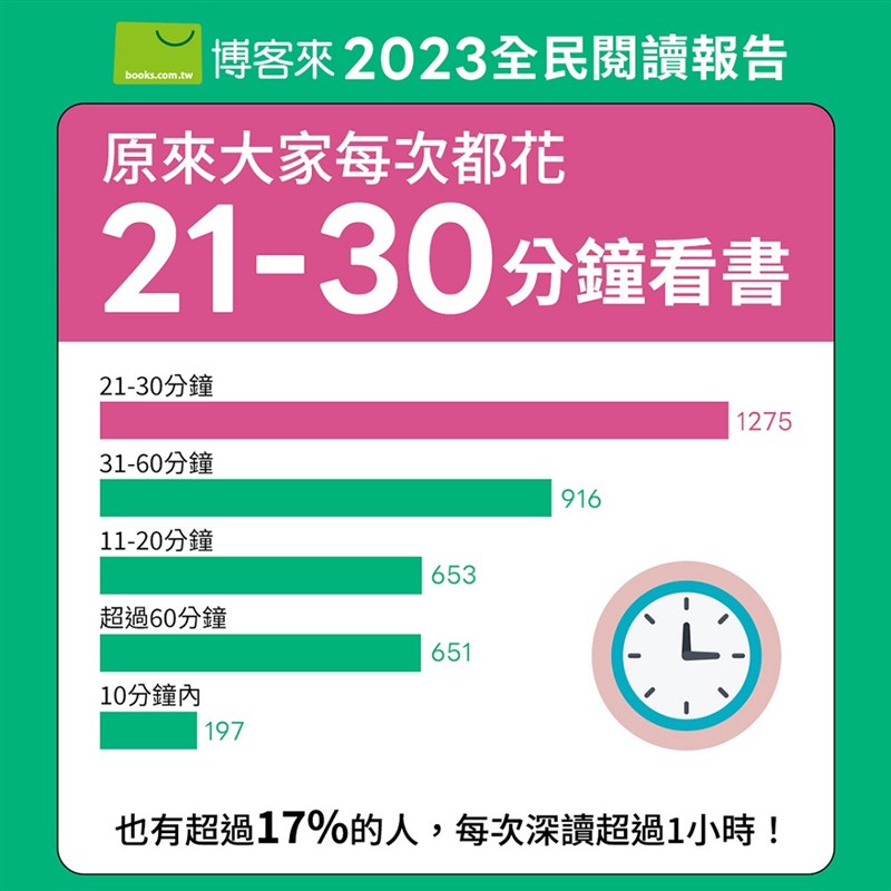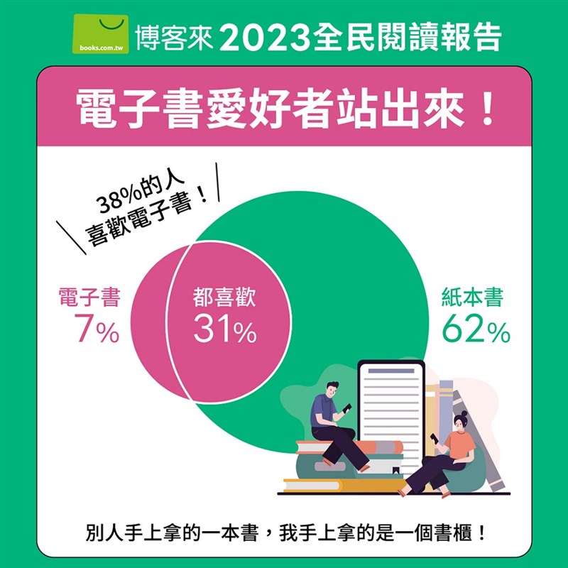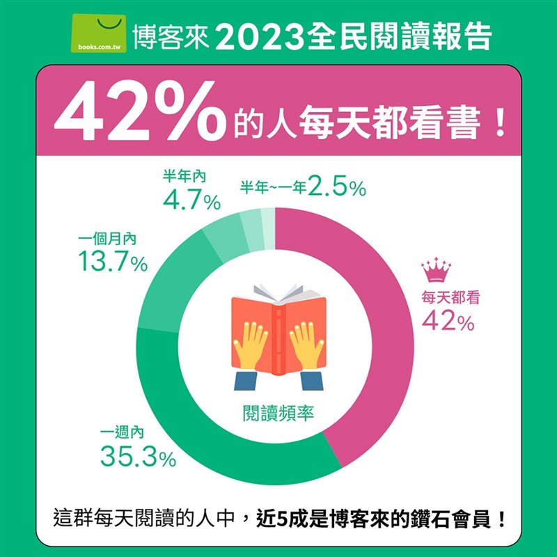 「短閱讀」時代來臨 博客來調查:逾4成人每日閱讀半小時 曹麗蕙 |2023.12.14 語音朗讀 1134觀看次 字級 大 中 小 逾四成 (42%)的受訪者每天都會閱讀,一周內有看書的比例也有35.3%。圖/博客來提供 【記者曹麗蕙台北報導】博客來今(14日)公布2023年「全民閱讀大調查」,發現超過4成的人,每日閱讀半小時,每月看完1本書,閱讀行為的碎片化、多書同時交叉閱讀,宣告「短閱讀」時代來臨;此外,調查也顯示,約有4成讀者每個月願意花500元買書,紙本書最愛在家看,電子書則因「攜帶方便」和「節省空間」受到青睞,反映出數位閱讀正逐漸成為大眾的主流選擇。博客來表示,這份調查蒐集超過4,000名、年齡19歲到60歲間各地區男女會員之問卷結果,從不同的角度了解會員閱讀行為偏好,並進一步說明,閱讀與時間、金錢、偏好、電子書,4大維度之間的關係,展現數位時代下閱讀新趨勢。逾四成的受訪者每次閱讀21至30分鐘。短時閱讀最為常見,其次為31分鐘到60分鐘,也有超過17%的人每次深讀超過1小時,反映了閱讀行為的碎片化趨勢。圖/博客來提供 分析閱讀頻率發現,逾四成(42%)的受訪者每天都會閱讀,一周內有看書的比例也有35.3%;其中21至30分鐘的短時閱讀最為常見,其次為31分鐘到60分鐘,也有超過17%的人每次深讀超過1小時,反映了閱讀行為的碎片化趨勢。平均一個月讀完一本書為主流約占45%,39%的讀者則在一周內讀完一本,多書同時交叉閱讀,是現今常見的型態,隨心情、時間、場合隨時轉換!近兩年大家平均看了11-15本書,疫情復工,旅遊重啟,待在家的時間變少,是閱讀量的影響因素之一。購書的人中,41%的人月願意花近500元購書。圖/博客來提供 調查顯示68%的人閱讀來源是自行購書,而購書的人中,41%的人月願意花近500元購書,其次是跟圖書館借閱,占24%,也有3%的人選擇電子書/雜誌訂閱方案作為閱讀來源,不僅反映出閱讀訂閱方案有很大發展空間,更突顯閱讀的高度自主性。調查也發現有逾5成受訪者表示,買書最主要的原因是看到有興趣的書以及有實務需求,此現象同步體現在「分齡閱讀榜」的觀察之中,10代到30代的閱讀榜中都可以看到「多益」與語言學習相關的書籍身影,30代後投資、商管書則明顯增加;40代高育兒需求,在購買商業理財和心理勵志書籍的同時,也會選擇童書和青少年文學。60代的讀者則更關注人文社會和醫療保健主題,如《大學的脊梁》、《紅色賭盤》、《時時刻刻微養生》列分齡榜1、2、6名;此外,也有近4成讀者鎖定關注的作家及出版社出新書。如,「博客來閱讀行為榜中」揭曉,《孤獨搖滾!》作者濱路晶以及華文暢銷作家黃山料分別登上動漫類熱門追蹤作家與非動漫類熱門追蹤作家冠軍。調查中72.5%的受訪者偏好在家中閱讀,13.2%人表示沒有固定閱讀地點。圖/博客來提供 調查中72.5%的受訪者偏好在家中閱讀,13.2%人表示沒有固定閱讀地點,還有6.3%以及4.8%選擇搭乘大眾交通工具及到圖書館閱讀。另外,沒有特別固定的閱讀時間占比高達41%,是數位時代的標準樣態,利用睡前、午休時間短暫沉浸在書籍中各有25%,反映出現代人在忙碌生活中對閱讀的堅持,零碎時間就是現代人的「黃金閱讀時間」。調查統計有38%的讀者喜歡電子書,其中7%喜愛電子書勝過於紙本書。「攜帶方便」、「節省收納空間」是大家喜歡電子書的最大原因,價格便宜、免等待即刻拿到,個人化功能等原因也是電子書受青睞的理由。隨著科技迅速發展,電子書與傳統閱讀方式並存,不僅體現閱讀行為的多樣性,反映出數位閱讀正逐漸成為大眾的主流選擇。「攜帶方便」、「節省收納空間」是大家喜歡電子書的最大原因,價格便宜、免等待即刻拿到,個人化功能等原因也是電子書受青睞的理由。圖/博客來提供 博客來表示,報告來自2023年10月25-10月31日期間,在網路上進行調查,蒐集超過四千位,主要年齡19歲至60歲間會員發放「閱讀大調查」的問卷結果,輔以博客來會員銷售資料。 前一篇文章 MLB/大谷道奇球衣超熱銷 超越梅西破紀錄 下一篇文章 NBA/一掌招呼諾基奇 格林無限期禁賽 熱門新聞 01瑕疵品反爆紅 哭哭馬賣到缺貨2026.01.1402日電鐵貴志站 任命第3代貓站長2026.01.1403平價版人類洗澡機 預計年底開賣2026.01.1404重慶川普紅不讓 談旅遊給人歡喜2026.01.1405【考考你的智力】2026.01.1206台南林鳳營 落羽松花海2026.01.1307武士僧帽水母 現蹤2026.01.1208新馬寺 佛光兒童歡喜入學禮2026.01.1309香港佛光道場 獲十大最高義工時數獎2026.01.1310削蘋果皮13.85公尺 小五女童2連霸2026.01.13 訂閱電子報 台北市 天氣預報 台灣一週天氣預報 相關報導 台半導體供應鏈 4成移美歷來最大手筆 台積今年資本支出 將逾500億美元台電技能競賽 1281名好手展技蔣經國逝世38周年 鄭麗文頭寮謁陵顧立雄:斷續收到墜海F-16黑盒子訊號搜救F-16飛官 海巡艦艇未發現油汙 作者其他文章共織宇宙 、林克恭個展 新美館登場從飲食到志怪 7作品入選寫台北書單山海塾《影見》登台 致敬天兒牛大遊園驚世夢 詮釋 《世世動了心》三世緣台北國際書展 2月3日登場 推閱讀泰精彩排氣管變身白鷺鷥