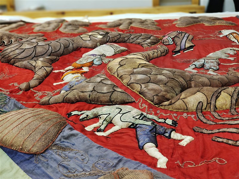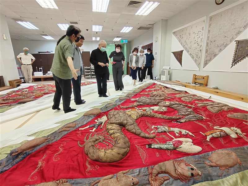 北港飛龍團大龍旗 登錄國家重要古物 江俊亮 |2023.12.14 語音朗讀 1889觀看次 字級 大 中 小 北港飛龍團大龍旗,獲登錄為國家重要古物。圖∕雲林縣文觀處提供北港飛龍團大龍旗。圖∕北港飛龍團提供北港飛龍團大龍旗與人的比例。圖∕雲林縣文觀處提供北港飛龍團大龍旗,圖中的中華民國國旗為台灣光復後繡上去的。圖∕雲林縣文觀處提供圖∕雲林縣文觀處提供圖∕雲林縣文觀處提供 【記者江俊亮雲林報導】早年雲林北港迎媽祖遶境隊伍中,有兩面在日治昭和元年(1926年)繡製的三角形「大龍旗」,當年在繡製時,曾流傳「天下第一旗,車倒三間店」(繡倒三間繡莊)的俗諺,為台灣面積最大的凸繡三角旗,今年由文化部登錄為國家重要古物。雲林縣文化觀光處表示,北港迎媽祖是台灣重要的民俗盛會,遶境隊伍中,各陣頭相互競藝,不僅比技術,也比文物排場,北港飛龍團「大龍旗」就是在這樣的氛圍中誕生。在迎媽祖的隊伍中,人們往往被其巨大的尺寸所震撼,反映出20世紀初北港地區陣頭、軒社競藝現象。文觀處指出,北港飛龍團成立於日治初期,由福州師傅翁三連傳授舞龍技藝,是日治時期北港迎媽祖遶境隊伍中重要的團體,不僅北港朝天宮1924年的〈聖母遶境行列序列〉中有記載,也曾出現在畫家施玉山1929年完成的〈朝天宮之祭〉畫作裡,如今北港飛龍團仍在運作,是相當長壽的陣頭團體。北港飛龍團「大龍旗」一組有兩面,是北港飛龍團於昭和元年(1926年)製作的大型民俗織品,長535公分、高454公分、斜邊673公分,由於尺幅過於巨大,需要繡工分工繡製,最後再進行組裝,因此有「天下第一旗(奇),車倒三間店」的俗諺。文觀處指出,「大龍旗」運用大量盤金滿繡,以金蔥線填滿紋飾圖像,配合「疊麟」、「跳紗」、「圈金」等盤繞技法,形成多元紋理,呈現奪目的光澤;繡工使用各式的混合針法,令「龍陣」和「水族陣」人物裝扮紋樣無一相同,也與表演陣容互相呼應,充分展現刺繡師傅的優秀設計能力及巧思。昭和4年(1929年)《台灣日日新報》報導大龍旗時,稱之為「文化雅觀」,並刊載大龍旗的尺寸。如今,北港飛龍團更留有昭和11年(1936年)的大龍旗「火災繼續保險證」,可見飛龍團對這兩面大龍旗的重視。文觀處表示,北港飛龍團「大龍旗」是早期北港迎媽祖的鮮明標記,除了承載許多人的記憶之外,大龍旗完成之初,也應邀參與嘉義機場落成演出,名氣喧騰一時,這也是台灣第一件陣頭文物被登錄為國家重要古物。 前一篇文章 敦煌石窟經變圖 林筠清師生聯展 下一篇文章 謝婉婷、邱俊壬聯展登場 巧手賦予廢木料新生 熱門新聞 01【樹博士系列】土壤的祕密XV 水稻田減排新觀念IV 土地的溫柔革命 雲林大埤寫益生菌奇蹟2025.11.0902【寬鼎畫語】 看不見的真相2025.11.1003悅讀華嚴經 成為幸福安樂地球人2025.11.0904【朗朗晴空】能替別人著想不會小2025.11.0905補充纖維、鈣、鎂、鉀 預防多種疾病風險2025.11.1106【森活日誌】意外的香遇2025.11.0907【視覺DJ 】給自己按個讚2025.11.0908發現DNA雙螺旋結構 諾貝爾生醫獎得主 華生97歲辭世2025.11.0909星雲大師全集⑲【佛教管理學②】禪門的管理法⑧2025.11.0910佛光山書蔬展開幕 聚焦天天行三好2025.11.09 訂閱電子報 台北市 天氣預報 台灣一週天氣預報 相關報導 《風土心》典藏展 再現土地情感與生命追求高雄春藝重磅登場 三檔國樂新舊相融再現眷村場景 《六公里的返鄉路》獲休士頓影展金獎跟著時空旅人 探索現代建築與歷史場域故事再現傳統戲曲榮光 地藏庵化身戲台上演八仙傳奇讓心靈反璞歸真 鄭宗龍《毛月亮》國際巡演獲好評 作者其他文章台灣首款本土咖啡 台農1號亮相3國寶畫故宮南院合體 僅限42天 中藥本草文化節 11月8日故宮南院登場十方禪林40周年 教界高僧大德同賀故宮南院特展 穿越千年遊谿山 真假高蹺鴴 相映成趣