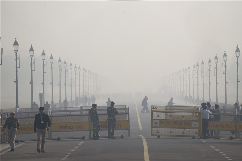 印度首都新德里15日清晨氣溫降至5度以下,寫下今年入冬以來的最低溫紀錄。圖為12月13日新德里清晨。圖/美聯社