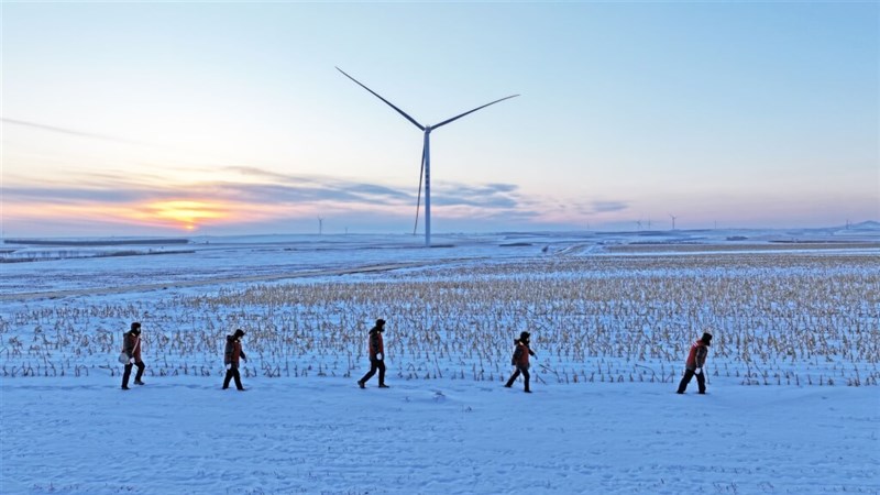 圖為內蒙古自治區呼倫貝爾市國網扎蘭屯市供電公司員工14日冒著嚴寒巡查電力線路。圖/中新社
