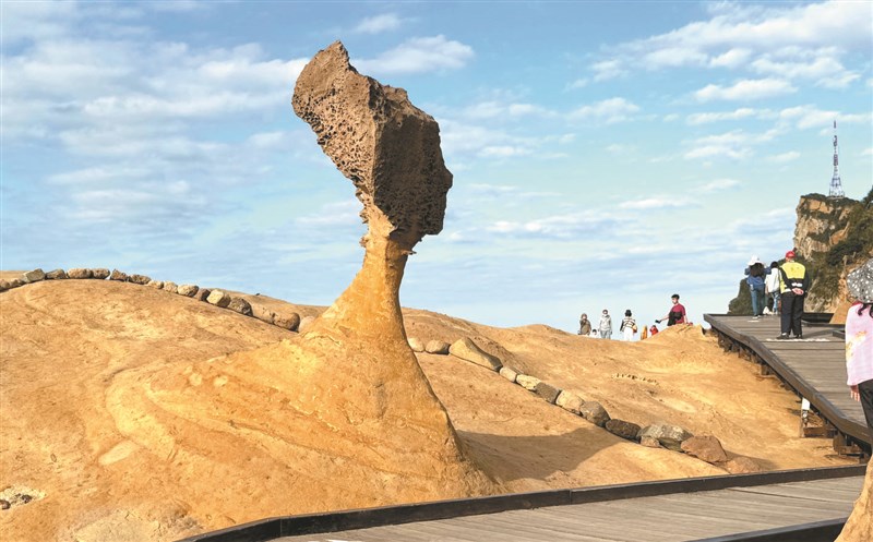 【本報綜合報導】新北市瑞芳區深澳海岸的象鼻岩前天崩毀,各界擔憂野柳女王頭難逃「斷頭」危機。已故攝影大師齊柏林「看見台灣」紀錄片上映後,有人盤點全台因氣候變遷或人為破壞面臨消失的八大美景,女王頭也被點名。