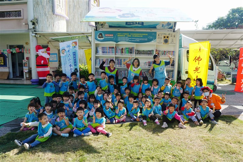 為推廣閱讀,佛光山南華大學圖書館重啟雲水書車、前進嘉義偏鄉校園,將逾萬本童書送入幼兒園、小學。圖/南華大學提供