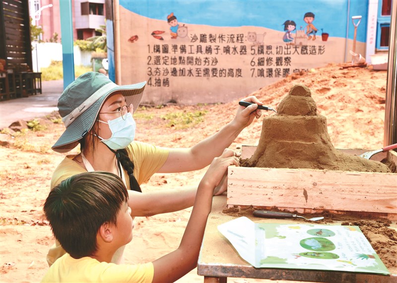 新北小校打造「一校就讀,多校共學」多元課程。圖為福連國小與福隆國小師生一起上沙雕課。圖/黃義書