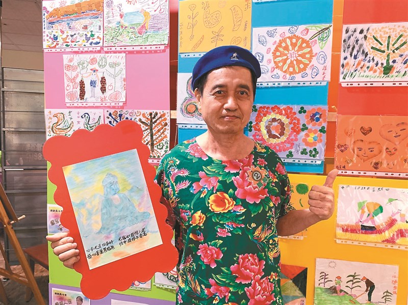 在協會的鼓勵下,解林用畫筆勾勒心靈世界,畫佛陀、觀世音菩薩及自畫像等,每一幅都是心情的照映。還分享服藥及運動、動腦以減緩他碎步、手顫抖的症狀。