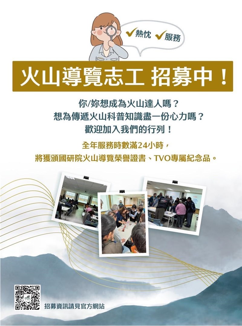 國科會表示,針對科普展示優化內容,會與陽管處共同培訓火山導覽志工,志工必須參加三天課程,內容包括火山基礎課程、火山監測說明、野外實地探訪及導覽練習等,歡迎對火山活動、自然景觀、科學研究、野外活動有興趣之退休人士、大專學生共襄盛舉。