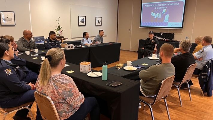 Michael Jonson shares his inspiring attitude of resilience and positivity with the police officers. photo/FGS NZ