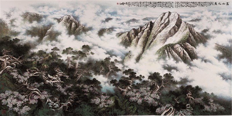 陳銘顯藉由國畫畫法,展現玉山主峰磅礡景緻。圖/玉管處提供