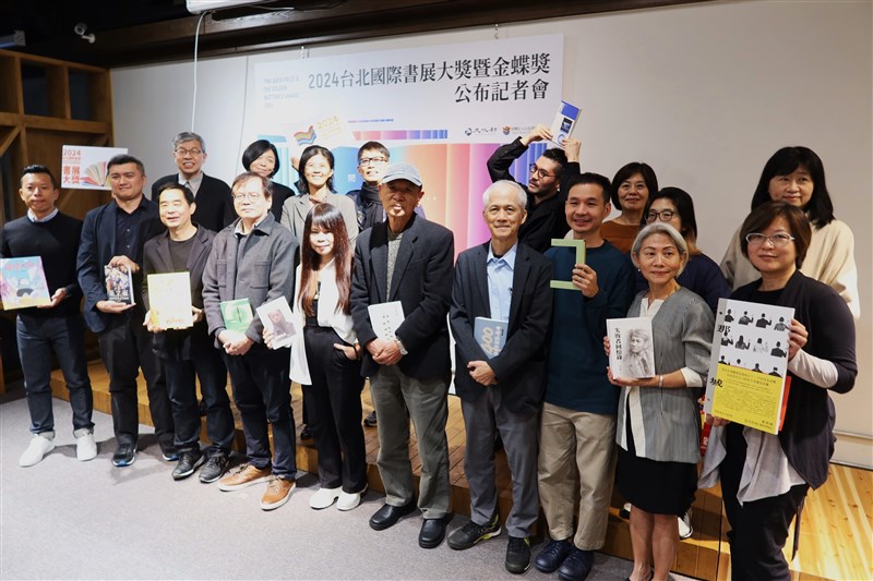 2024年第17屆台北國際書展今(28日)公布書展大獎暨金蝶獎得獎名單,圖為獲獎得主大合影。圖/台北書展基金會提供