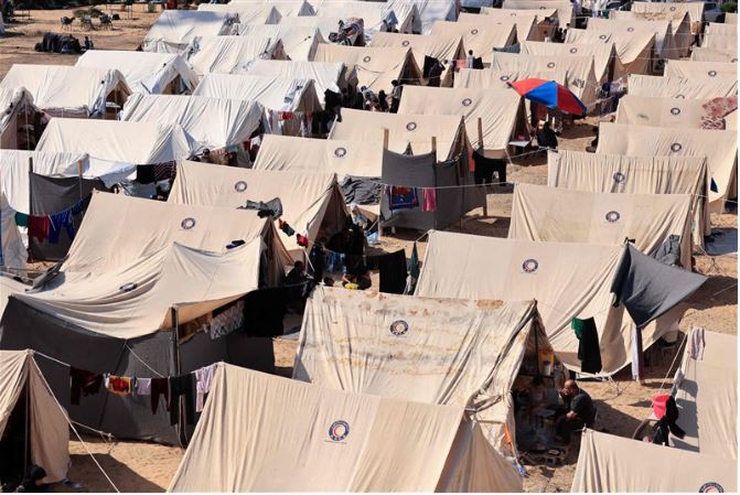 加薩南部多人棲身於人滿為患的醫衛機構,世衛相當擔憂傳染病威脅加劇。圖/法新社