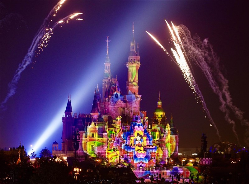 因空汙嚴重,上海迪士尼樂園今晚可能沒有跨年煙火秀。圖為上海迪士尼樂園早前煙火燈光秀的資料照。圖/新華社