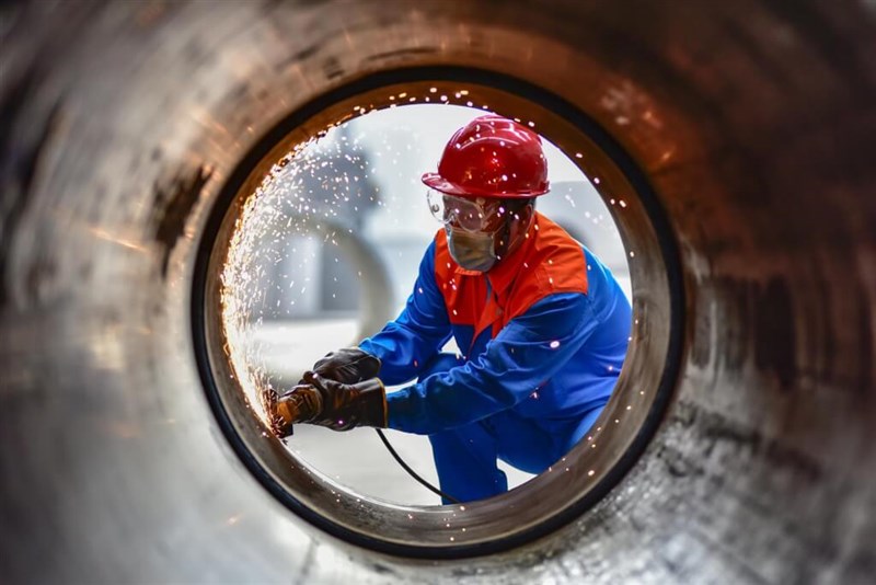 圖為山東省一家設備製造公司車間裡工人打磨作業。圖/中新社