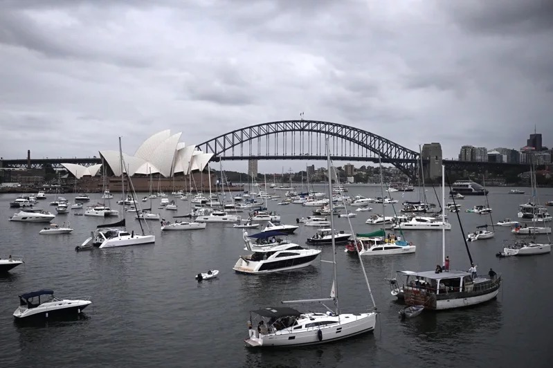 洲東部部分地區今天降下暴雨,引發暴洪,洪水淹沒了道路,多地一天降雨量相當一個月,給一些才剛在耶誕假期遭逢大雷雨侵襲的居民帶來更多痛苦。圖為從澳洲麥格理夫人角,俯瞰停泊在雪梨港的遊船。圖/歐新社