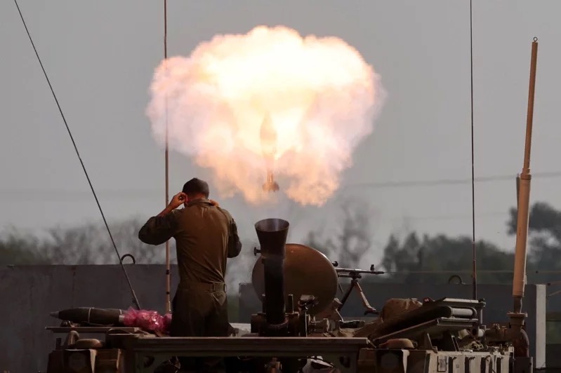 以色列國防軍(IDF)發言人哈加里今天表示,以國與哈瑪斯之間的戰爭預計將持續整個2024年。圖為以色列士兵向以色列南部加薩走廊邊境附近地區發射迫擊砲。圖/歐新社