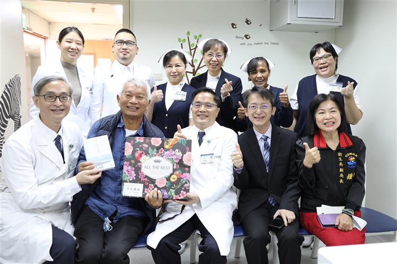 健保署東區業務組組長黃兆杰親自到現場,見證台灣癌症醫療重要里程碑,也帶來石崇良署長的祝福。黃兆杰說,腫瘤對於病人或者病人家屬都是一個巨大挑戰,健保署站在病人角度,當然要為病人解決問題,感謝花蓮慈院團隊用心幫病人爭取,率全台灣之先,為張女士爭取到第一個健保給付。花蓮縣衛生局副局長鍾美珠,也特別穿上紅色衣服,前來祝福張女士重生。