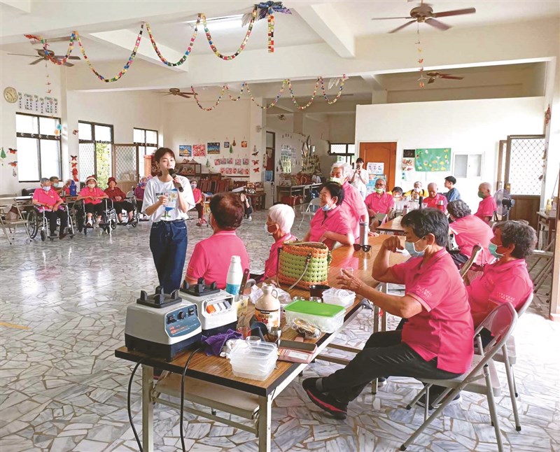 義守大學營養系學生透過桌遊,教長者營養飲食觀念。圖/蔡世偉翻攝
