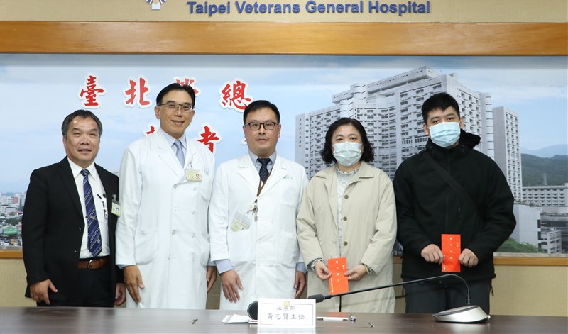 病友藍先生(右1)及胡女士(右2)分享治療經驗,中為北榮泌尿部醫師魏子鈞。圖/北榮提供