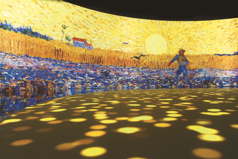 展覽陳列全球著名博物授權仿製的原寸名畫、AI還原梵谷自述生平、重現巴黎歌劇院的光影劇場,觀眾還能在仿橘園美術館的直徑十五公尺、五百四十度環形劇院中,沉浸式欣賞莫內、梵谷等印象派畫家的名畫,感受季節和景色的美麗。