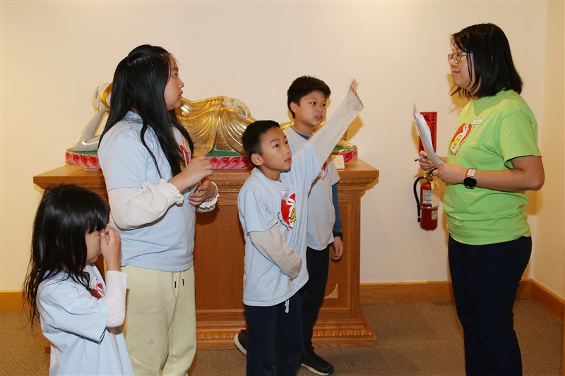 To allow the Buddhist faith to take root in the children’s hearts, the event began with the joyful singing of the Ode to the Triple Gem. The students were grouped into four teams - Team Kindness, Compassion, Patience, and Wisdom - to embark on a "Temple Amazing Quest". The missions were organized by Teacher Juju to foster collaboration, exchange, and teamwork. The children visited six locations in the Temple and were engaged in trivia review questions on the core concepts of Humanistic Buddhism, such as the Three Acts of Goodness, Four Givings, Five Precepts, Six Perfections, the law of cause and effects, and Buddhism fundamentals.