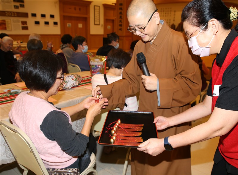 The Abbess presenting a special gift with the Venerable Master's calligraphy, "Every day is a good day," to all seniors. photo/FGS Toronto