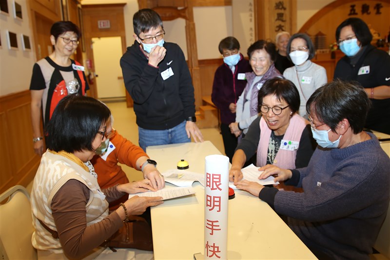 Classmates happily participating in the brain-teasing activities "Hundred Laws, Hundred Hits." photo/FGS Toronto