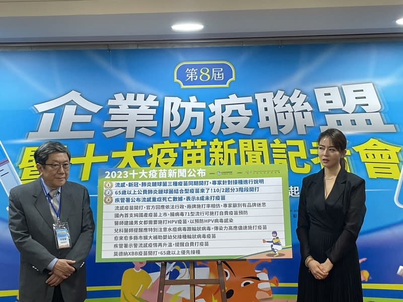 2023年10大疫苗新聞,由台大兒童醫院小兒科醫師李秉穎(左)與形象大使劉香慈(右)共同揭曉。圖/記者陳玲芳