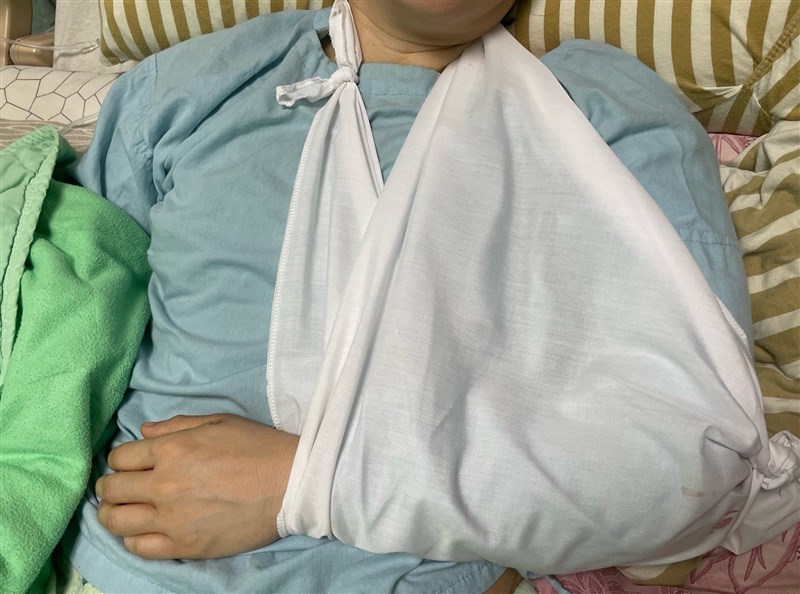 新式的術後復健,是讓病人在術後第一天,便開始接受緩和式的復健動作,在病人疼痛能承受的範圍內,鼓勵多活動肩膀,三角巾則準備在必要時使用,以提供保護。圖/長庚醫院提供