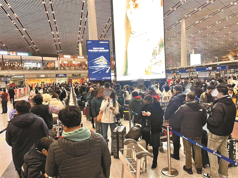 2024總統大選13日投票,兩岸直航點的中國大陸各機場紛紛湧現台商返台投票人潮,圖為北京首都機場昨日返台航班幾乎都客滿。圖/讀者提供