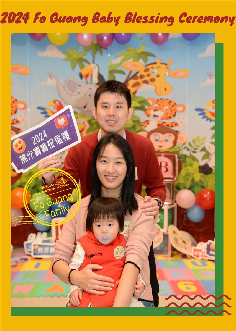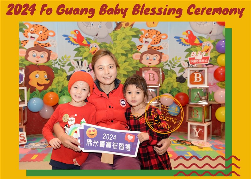 Among the 108 registered babies and children this year, many are participating for the first time. Some have previously attended the Fo Guang Baby Blessing Ceremony in 2017 or 2023. The heartwarming scenes and happiness of Fo Guang families showcased at the photo booth while taking family photos are indicative of the embrace of Humanistic Buddhism.