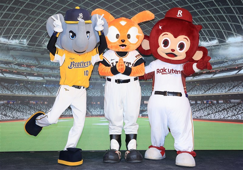 日職讀賣巨人軍台灣交流賽將在今年3月登場,讀賣巨人隊、中信兄弟隊、樂天桃猿隊吉祥物日前出席門票啟售記者會催票。圖/余承翰