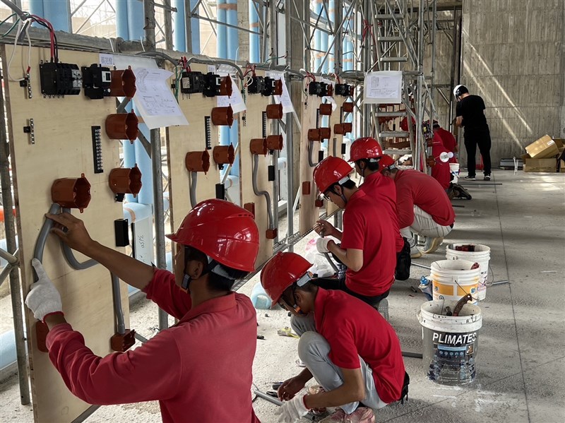 磐興建設「磐興有愛.匠人有感」比賽,其中水電匠人參賽者認真施做。圖/磐興建設提供