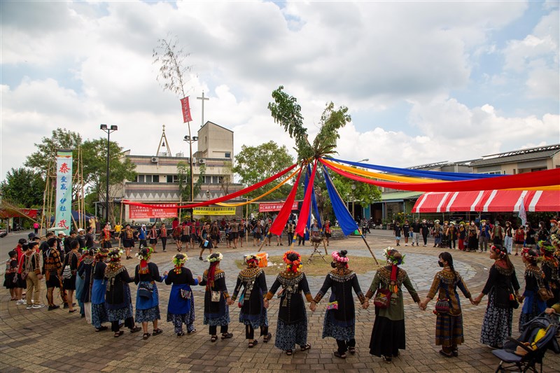 屏東縣泰武鄉泰武社區發展協會「ari_senasenai-走吧!我們去唱歌!」,透過母語歌謠串聯各世代族人共同學習母語,建立屬於吾拉魯滋部落的母語拼寫方法,圖為吾拉魯滋部落舉辦小米收穫祭。圖/文化部提供