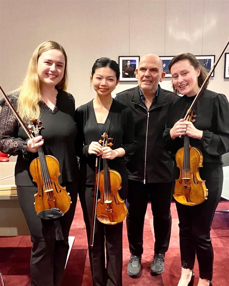 在紐約愛樂音樂總監梵志登(右2)宣布下,來自台灣的29歲小提琴家黃薏蓉(左2)正式拿到紐約愛樂團員終身職,追夢成真。圖/黃薏蓉提供