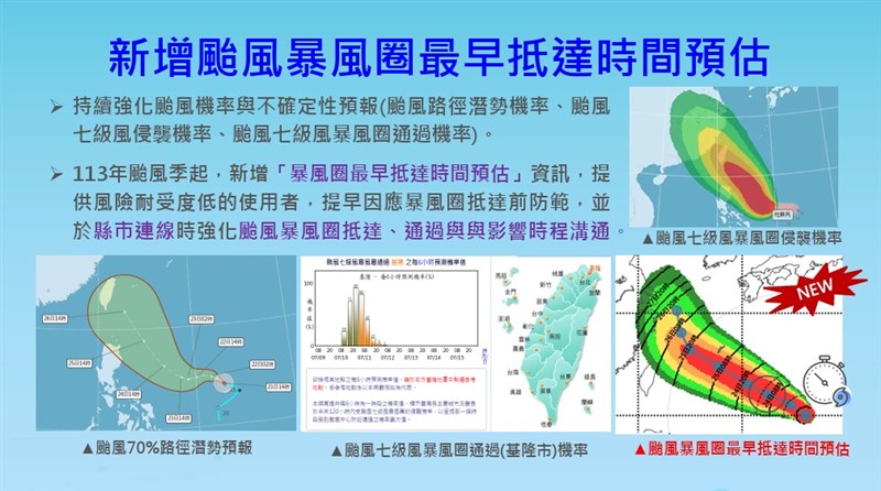 113年颱風季起,氣象署今年將新增「暴風圈最早抵達時間預估」資訊,程家平表示,此資訊要讓縣市政府甚至是民眾能夠掌握颱風影響程度,並在暴風圈抵達前提早因應。
