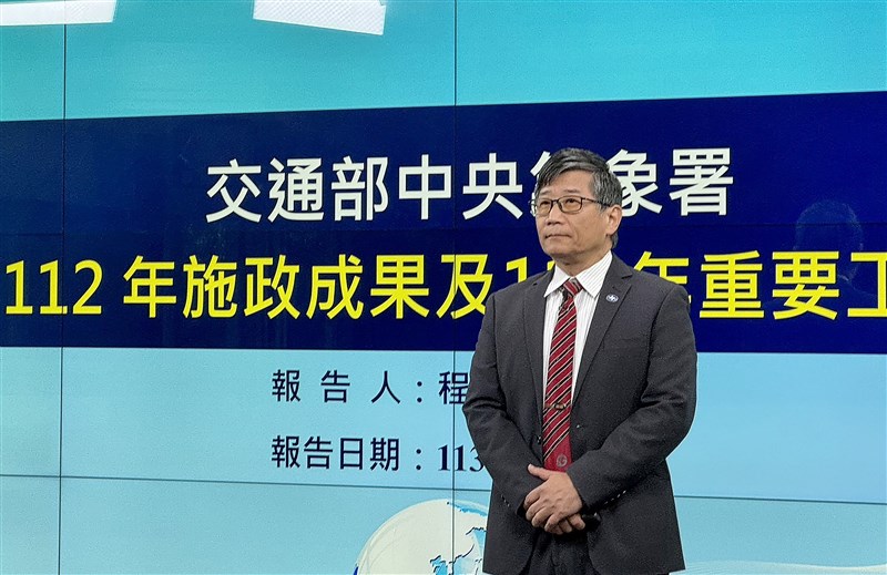 交通部中央氣象署長程家平17日主持記者會,報告112年施政成果與113年重要工作,會中指出113年颱風預報將新增「暴風圈最早抵達時間預估」資訊。圖/記者余曉涵