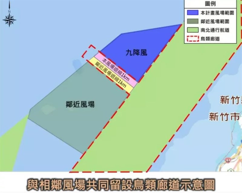 另也強調,風場範圍已避開中華白海豚棲息地環境範圍、南北直航航道範圍,以及保護礁區、漁港、濕地、漁業資源保育地、重要野鳥棲地、軍事禁限建等敏感地區及相關開發計畫。
