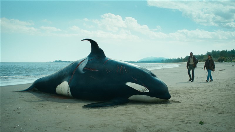 《群》故事描繪世界各地傳出的海洋異常事件,如鯨魚擱淺全身受傷、鯨魚摧毀船隻、深海螃蟹攻擊沙灘、蚌類阻擋貨櫃船等詭異災難。圖/公視提供