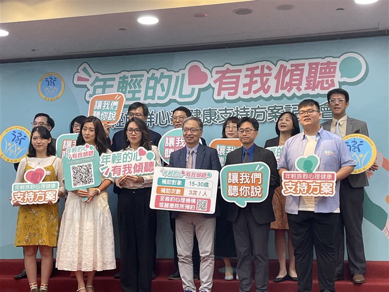 衛福部2023年8月1日起,與台灣精神醫學會、台灣精神科診所協會、中華民國臨床心理師公會全國聯合會、台灣臨床心理學會、中華民國諮商心理師公會全國聯合會、台灣諮商心理學會及台灣輔導與諮商學會共同合作,推動「年輕族群心理健康支持方案」,供15至30歲民眾每人3次免費諮商。