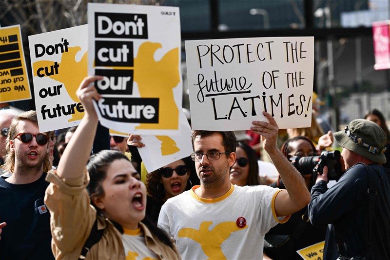 美國「洛杉磯時報」大規模裁員,所屬記者集體罷工,為洛時創報142年來首見。圖/法新社