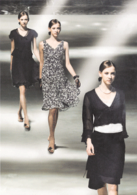 服裝色彩是服裝感觀的第一印象,它有極強的吸引力,若想讓其在著裝上得到淋漓盡致的發揮,必須充分瞭解色彩的特性。淺色調和豔麗的色彩有前進感和擴張感,深色調和灰暗的色彩有後退感和收縮感。