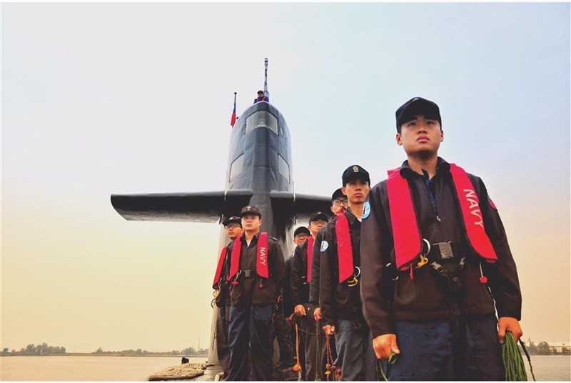 因應海虎艦落海官兵搜救經驗,海軍規劃在水面艦、潛艦所有救生衣上加裝MOV。圖為潛艦官兵與救生衣。