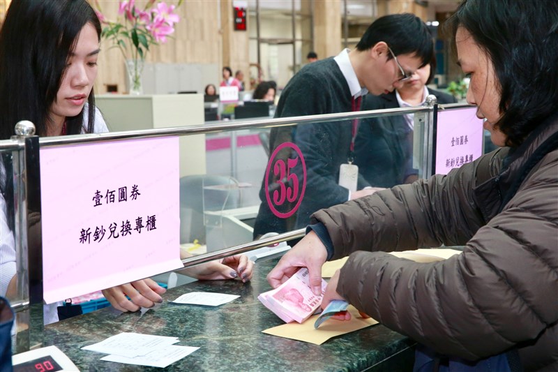 央行指出,新鈔兌換日程訂於2月1日(周四)至2月7日(周三),計5個營業日。上述期間,7家銀行373家指定兌鈔分行,以及中華郵政公司位於都會區的24家指定兌鈔郵局,均將開設「新鈔兌換專櫃」,以加強服務民眾;另59家偏遠地區郵局,則於一般營業櫃檯辦理兌換新鈔。
