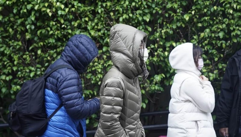 中央氣象署今晚預測,寒潮將於明天及24日爆發,今晚至明晨全台都很寒冷,圖為今日上午北市中正區民眾穿著厚重衣物保暖。圖/中央社
