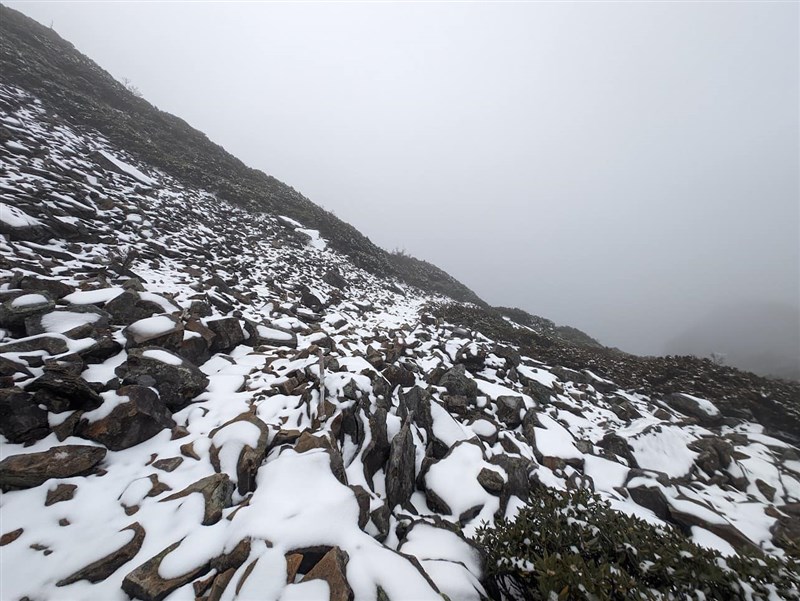 山友林婉儒在臉書「雪霸國家公園登山資訊分享站」PO出21、22日雪山主峰下翠池雪況。圖/取自臉書